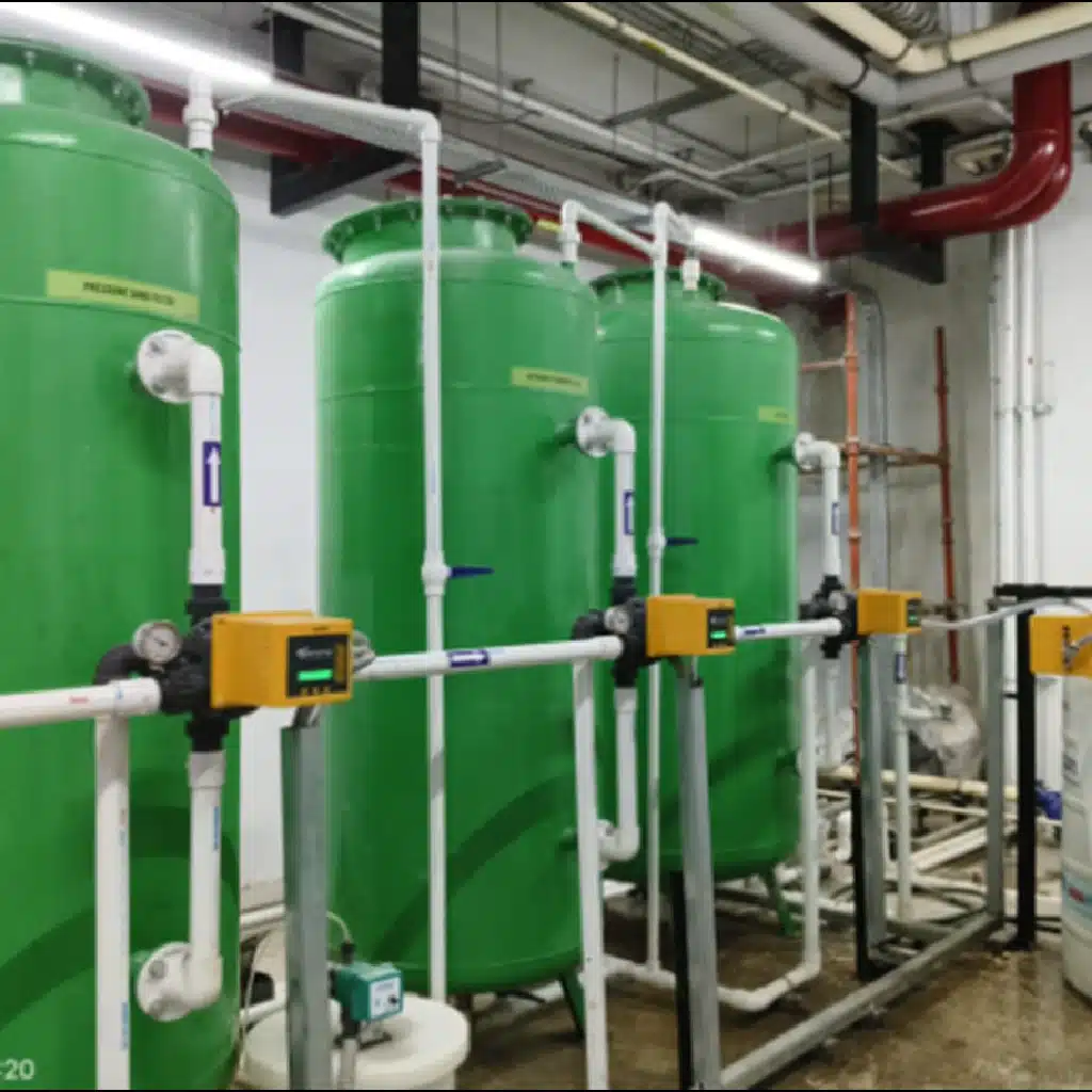 Water treatment plant schematics ensuring filtration, softening, and safe potable supply.